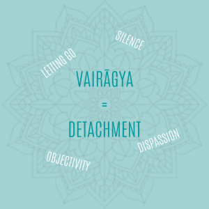 Two of the most important Yogic texts, Yoga Sūtra by Sage Patanjali and the Bhagavad Gita, both mention this concept as an important step to advance on the spiritual path and to find peace in everyday life. The Bhagavad Gita says that detachment from sensory distractions, relationships, desires that lead us astray is critical to finding focus, peace, and joy in life. The Yoga Sūtra says that consistent practice and effort combined with detachment can lead to self-realisation, samadhi, enlightenment, freedom.