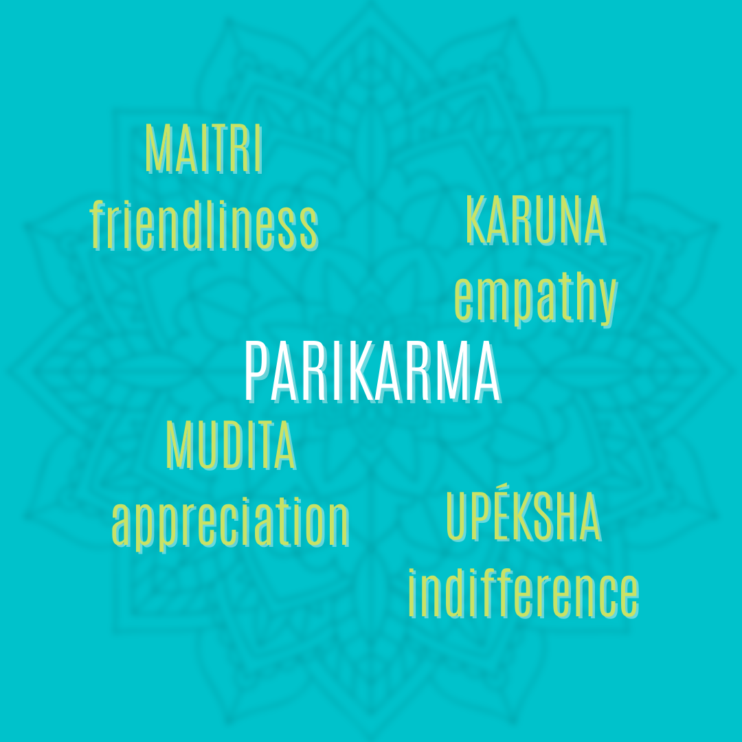 In Yoga, there is a lot of emphasis on our thought processes and thinking the right thoughts. What is right differs from person to person; right thinking keeps us healthy in body and mind in the long run. The Sūtra that talks about Parikarma says this: (do not worry, we are going to break this down into its component words):